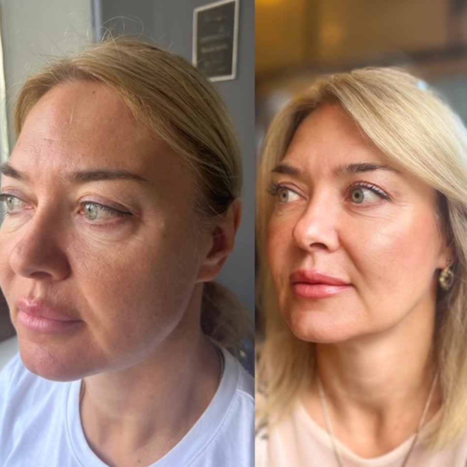 Результат косметологічних процедур завжди індивідуальний і залежить від вихідного стану шкіри, обраної методики та вашого віку. Головне, що ви побачите — це свіжість і помітне поліпшення якості шкіри. Шкіра стає більш пружною, зволоженою, вирівнюється її тон та текстура, зменшуються дрібні зморшки. Важливо розуміти, що наша мета – природний результат без ефекту "маски" чи "замороженої" особи. Ви залишаєтеся собою, просто виглядаєте більш доглянутою і молодшою.
